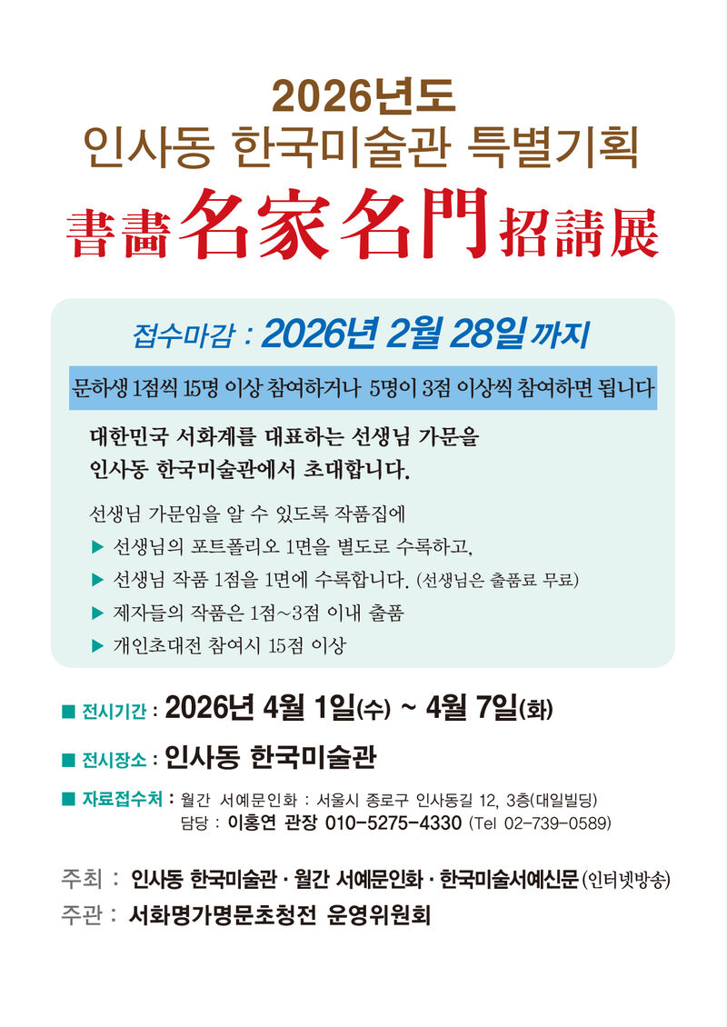2026 명가명문초대전 <전시 및 접수기간 변경>