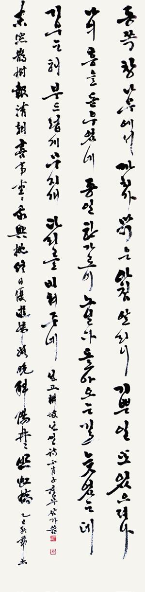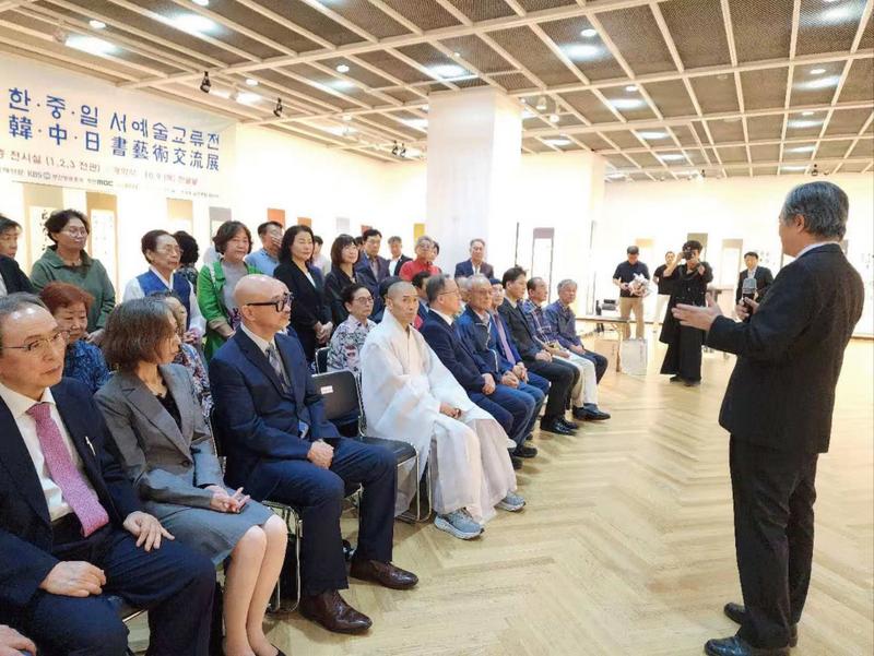 한중일 서예술 교류전 전시장 정경 (3전시실)또한 <2025 한·중·일 국제교류전>에서는 세 나라의 작가 30인씩 자국의 문자를 작품으로 쓴 반절지 90인의 작품을 소개하였다. 허경무 이사장은 “전통문화 예술을 가꾸는 한·중·일 서예가들은 인류문명사에서 가장 중요한 문자를 예술적으로 가꾸는 창조자들입니다. 이런 교류행사를 통하여 서로 간의 문화를 이해하고, 각기 지닌 고유성과 정체성도 잘 담아내고 알릴 수 있는 좋은 계기가 될 것입니다. 이미 몇 차례의 교류행사를 하면서 서로 간의 정도 많이 쌓이고 이해의 폭도 많이 깊어졌습니다.”라면서 중국의 의오시서법가협회 첸젱빵 주석과 일본 오사카 국제서도교류협회 데라다 하쿠운 이사장을 비롯한 회원들에게 감사의 말을 전하였다. 중국전은 오는 11월에, 일본전은 내년 1월에 순회 전시와 학술행사를 할 예정이다.
