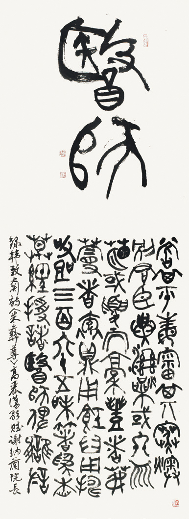 이번 춘원당한의약박물관 특별전으로 개최되는 청운 김영배 선생의 초대전에서는 ‘용골’에 보이는 갑골문 자형과 금문 자형을 융합하여 청운이 지향하고 있는 문자학을 가미하였으며, 전각을 할 때 인고(印稿)의 형식미를 빌려서 작품을 제작하려 노력했다. 한편, 화선지 위에 글씨를 꽉 채우지 않고 텅 빈 공간을 두어 마음과 정신의 아름다움으로 표현되어 나오도록 했다. 춘원당한의약박물관 소장품과 서예의 어울림은 사람의 몸속에 한약이 흡수되는 것 같은 조합이라고 볼 수 있다.