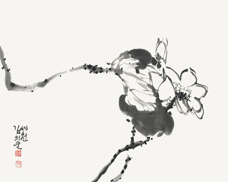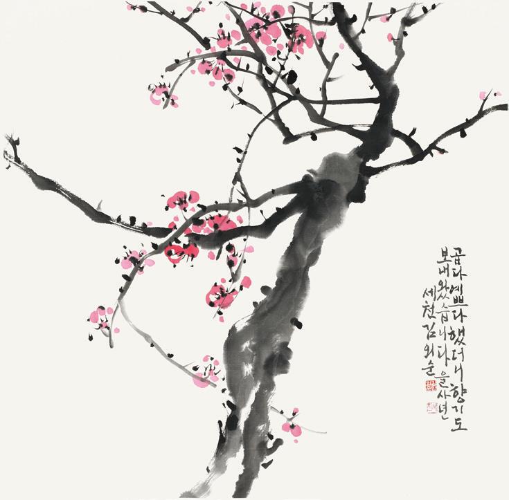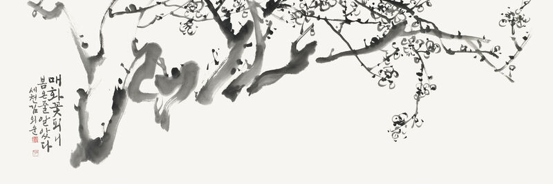 매화 역시 고결한 정신과 절개를 표현하는 문인화의 주요 소재이다. 작품 <묵매Ⅱ>는 마치 글씨를 쓰듯 대담하게 노간(老幹)을 표현하였고, 상방(上方)을 트고 가지가 향한 오른쪽에 주력하여 꽃을 피워 균형을 이루었다. 하방(下方)은 여백을 풍부하게 남긴 점이 돋보였다.