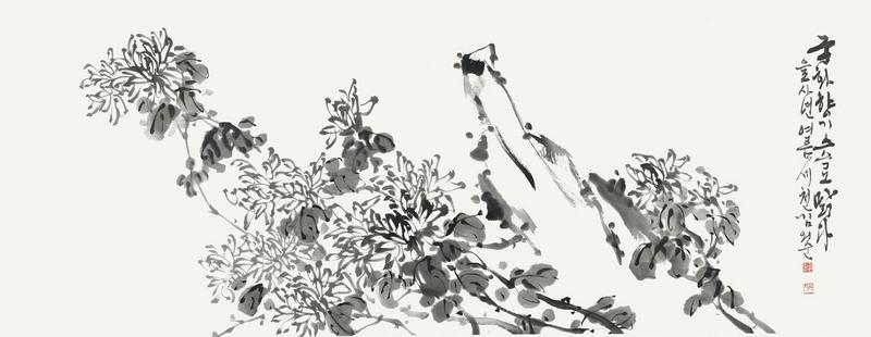 국화 작품에서는 담묵을 주조로 하고 농묵으로 입체감을 살린 <묵국Ⅰ>은 서리가 내리는 늦가을에도 홀로 피어나는 절개와 은일(隱逸)의 정신을 상징하는 국화의 특성을 잘 보여주였다.