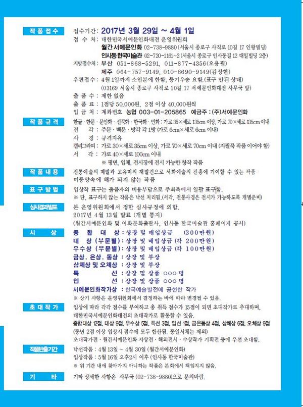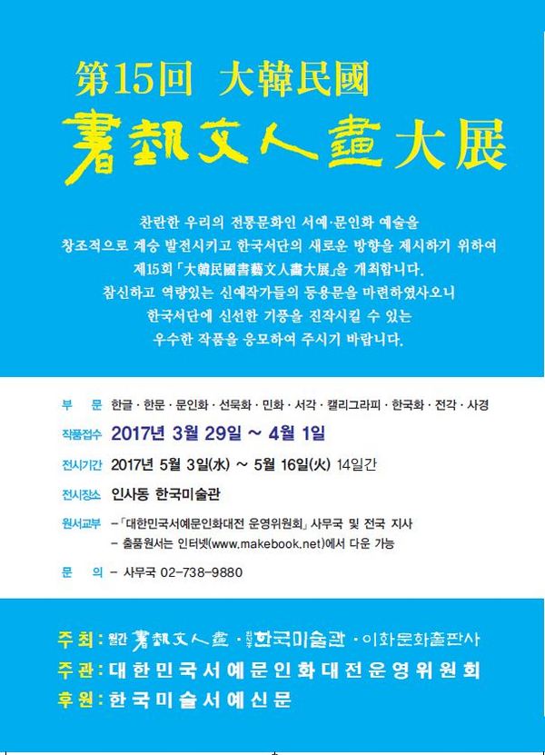 ‘제15회 대한민국 서예문인화대전’ 작품 공모