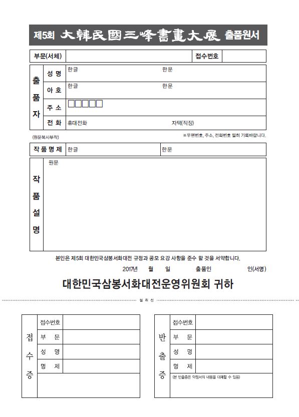 '제5회 대한민국 삼봉서화대전' 작품 공모