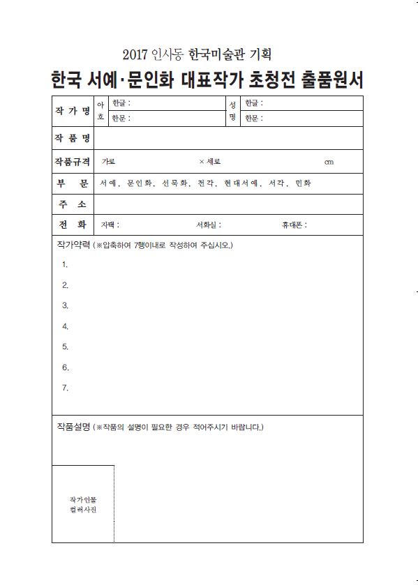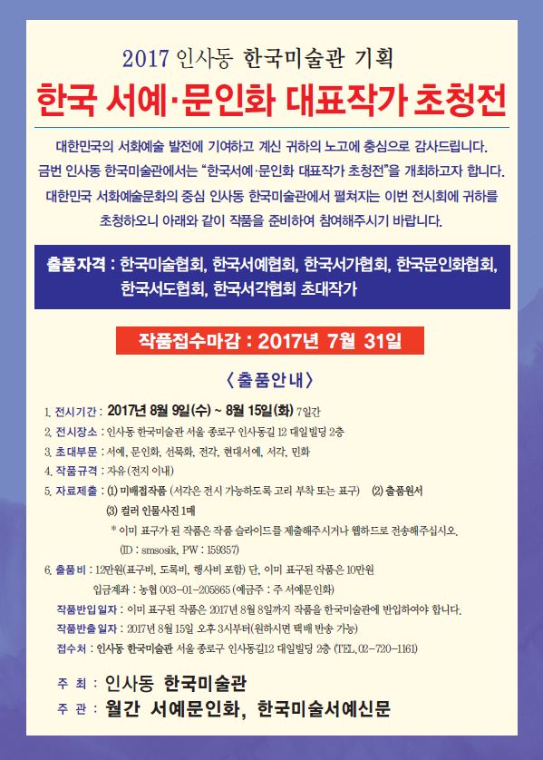 2017 인사동 한국미술관 기획 ‘한국 서예·문인화 대표작가 초청전’