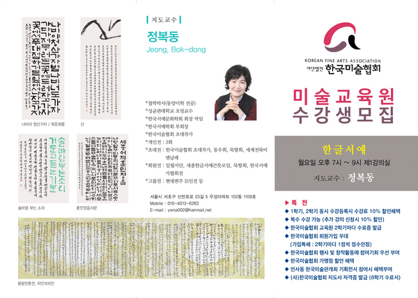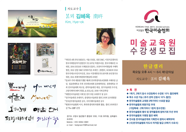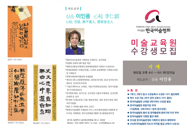 한국미술협회 교육원 강사 프로필 (서예·문인화·캘리그라피)