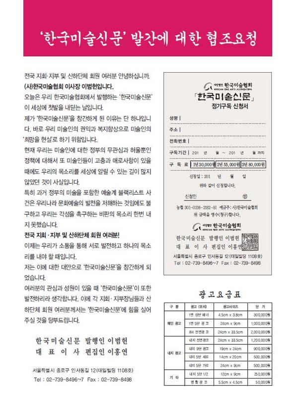 ‘한국미술신문’ 발간에 대한 협조문