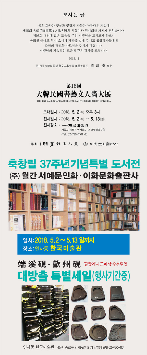 ‘제16회 대한민국서예문인화대전’ 창립 37주년기념특별 도서전