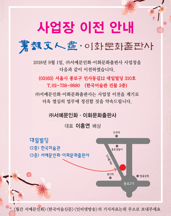 (주)서예문인화 · 이화문화출판사 사업장 이전 안내