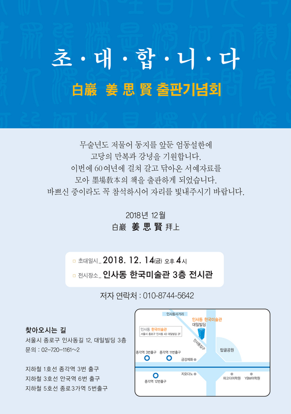 운학 박경동 선생 고희 서예전, 인사동 한국미술관에서 열려....