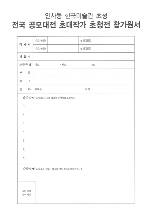 주관 : 전국공모대전초대작가초청전 운영위원회