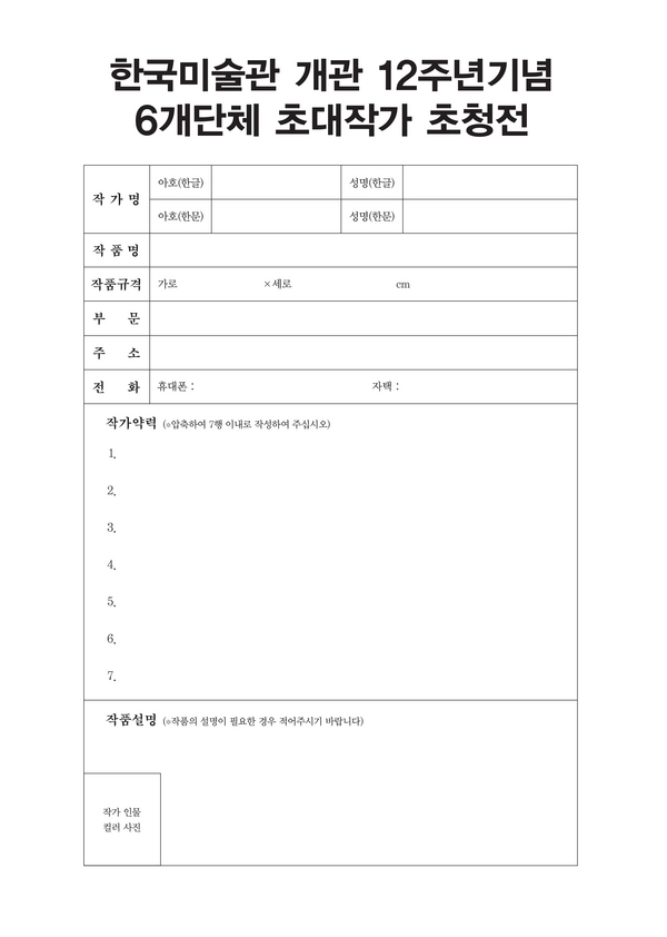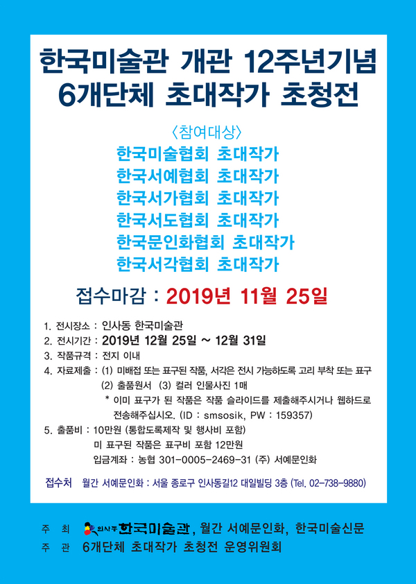 6개단체 초대작가 초청전 - 한국미술관 개관 12주년 기념