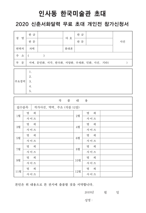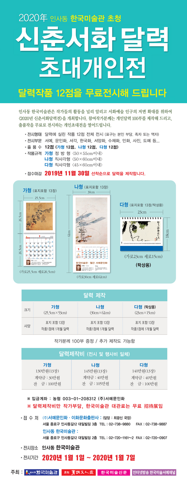 문자/카톡 홍보(유료서비스)서예/문인화/민화/서각/캘리그라피/한국화/전각/미술 분야협회전, 공모전, 초대전, 전시회 등문자/카톡 홍보를 이용해보세요.서예/미술 협회 회원 및 초대작가 등 많은 회원들에게 빠른 홍보가 가능합니다.- 단문(SMS) : 한글 45자(90byte)- 장문(LMS) : 한글 1,000자(2000byte)- 포토문자(MMS) : 사진3장 + 한글 1000자(2000byte)- 카...