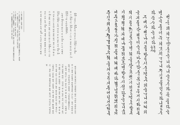 선인들의 삶에 대한 이해를 깊이 하고 한글 서예에도 도움이 될 만한 자료로서 국립중앙도서관 소장본 『규합총서』를 골라, 우리 나름으로 연구하고 이해한 대로 주석과 현대어 역을 곁들여 소개하고자 합니다. 『규합총서』는 권1 주사의(酒食議, 술과 음식), 권2 봉임칙(縫紝則, 바느질과 길쌈), 권3 산가락(山家樂, 농촌 살림살이), 권4 청낭결(靑囊訣, 병 다스리기), 권5 술수략(術數略, 점치기) 등 총 5권으로 구성되어 있는데, 권5는 목차만 전하고 내용은 전하지 않습니다. 국립중앙도서관 소장본은 이 가운데 권2 봉임칙을 필사한 것만 남아 있는데, 그나마 온전하지 못하고 끝부분이 빠져 아쉽습니다. 하지만 필사한 글씨가 정교하고 아름다우니 한글 서예를 하는 분들께 도움이 되었으면 하는 바람으로 이 책을 펴냅니다.