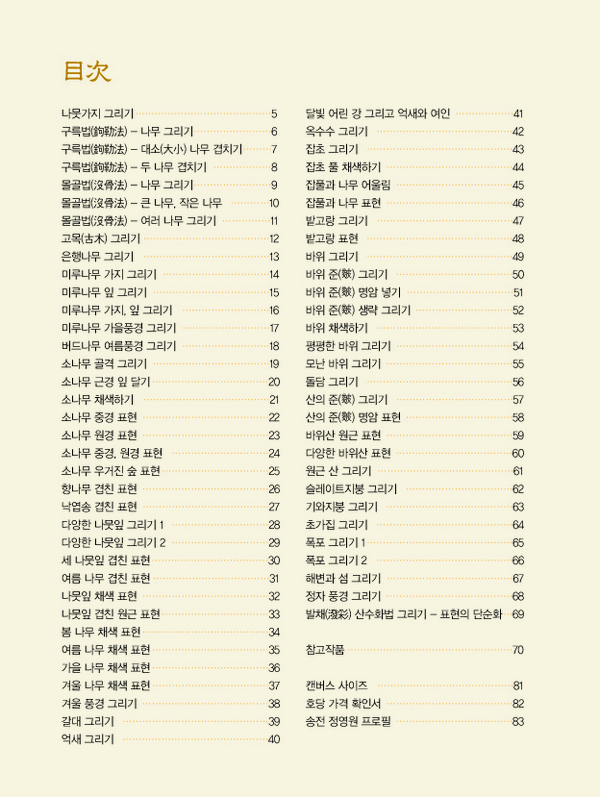 그런 점에서 전체적인 구성은 먹으로 표현한 다음, 단색(單色)만 쓰지 말고 먹과 채색을 조화롭게 잘 조합해서 완성한다. 이로써 오랜 세월 수천 년이 지나도 변치 않고 살아 있는, 싫증이 나지 않는 자연미(自然美)를 연출한 나만의 뛰어난 작품이 될 수 있을 것이다.