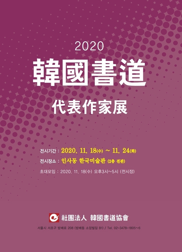 오곡백과가 알알이 익어가는 晩秋의 佳節 韓國書道協會에서 개최하는 2020 招待作家展을 祝賀 드립니다.