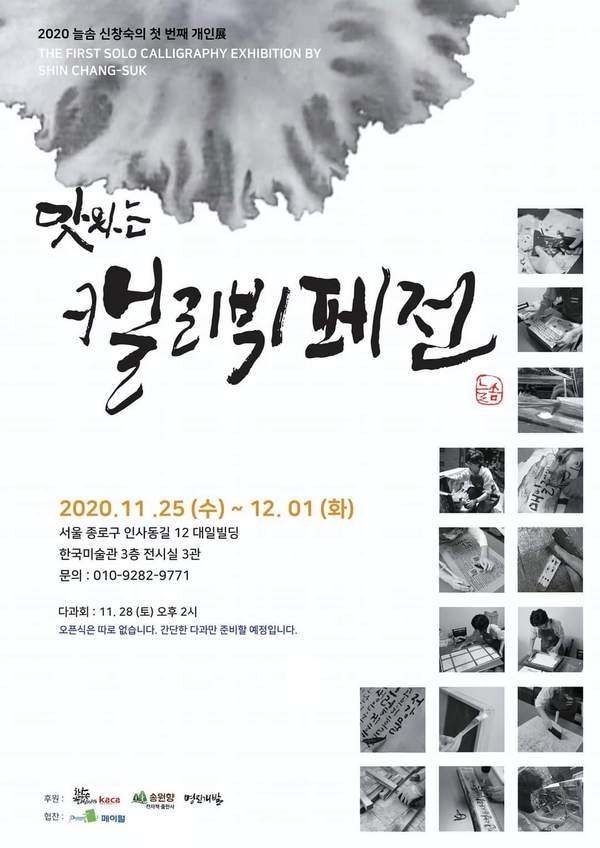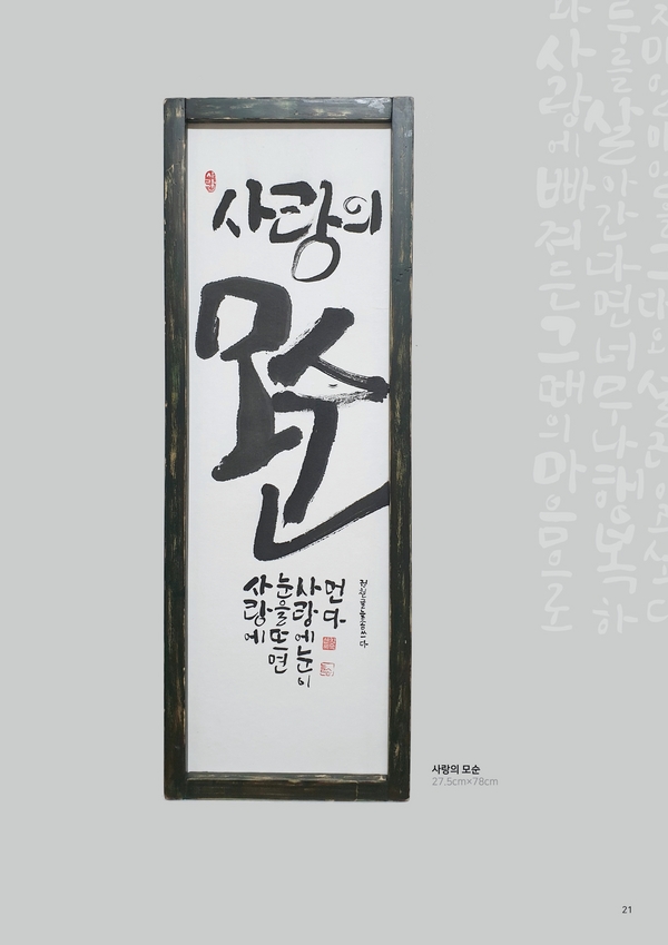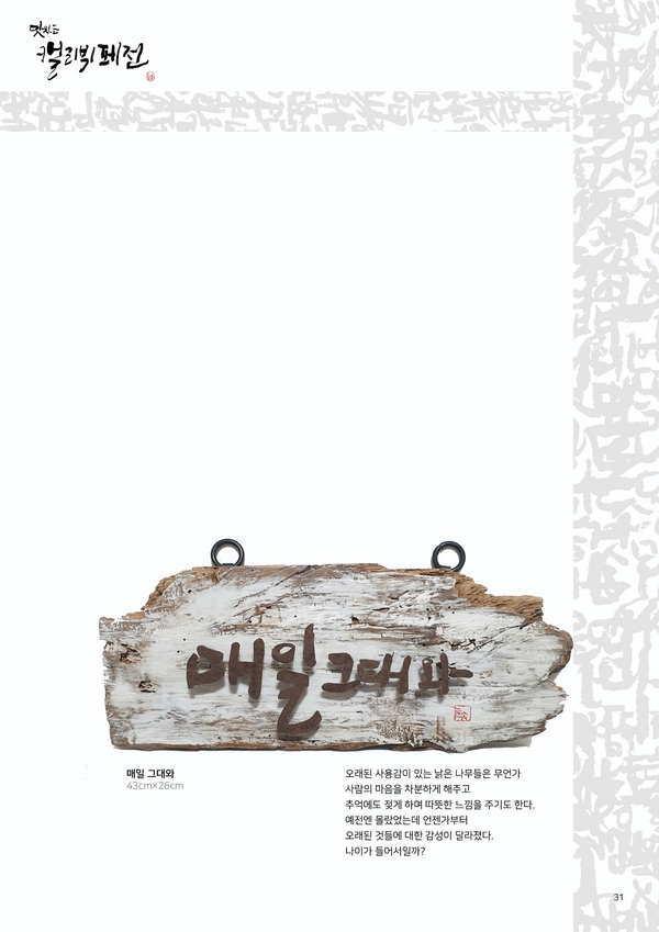 이번 맛있는 캘리뷔페전에서는 이런 다양한 소재나 기법을 통해 여러분께 여러 가지 작품을 선보이고자 노력하였습니다.