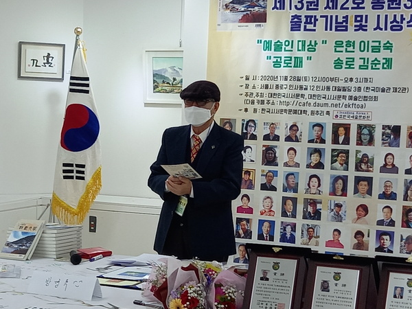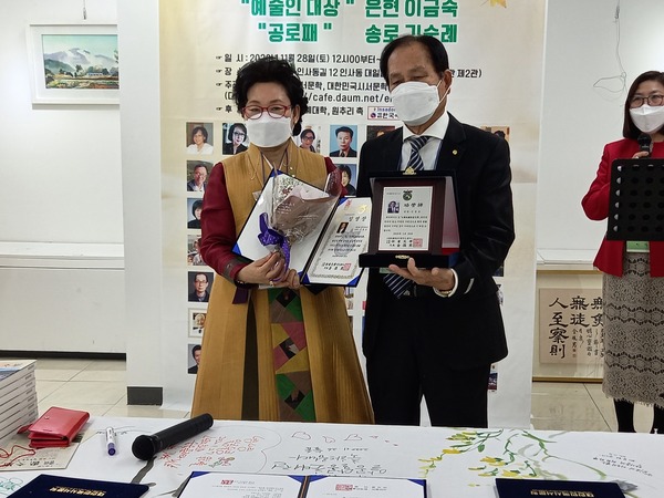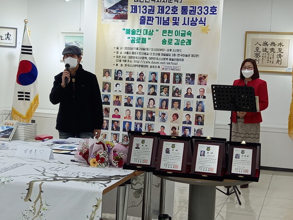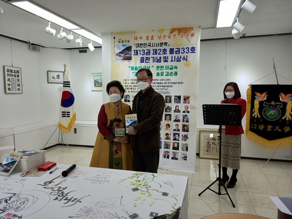 이번 藝術人大賞에는 삼절작가이신 은현 이금숙, 功勞牌에는 창간부터 변함없이 늘 함께하신 시인 김순례, 감사장 장성용님이 선정되었습니다.