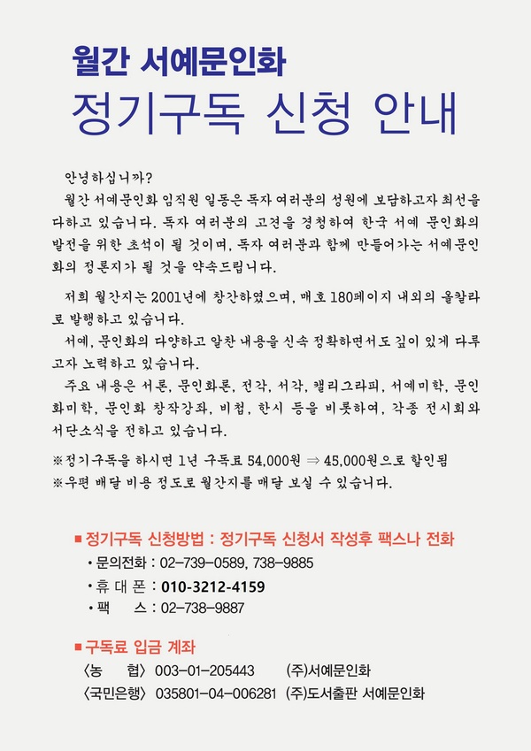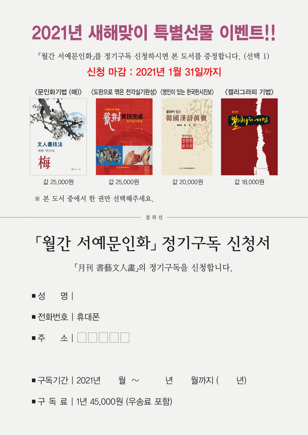 ☞ 월간서예문인화 정기구독 신청하기