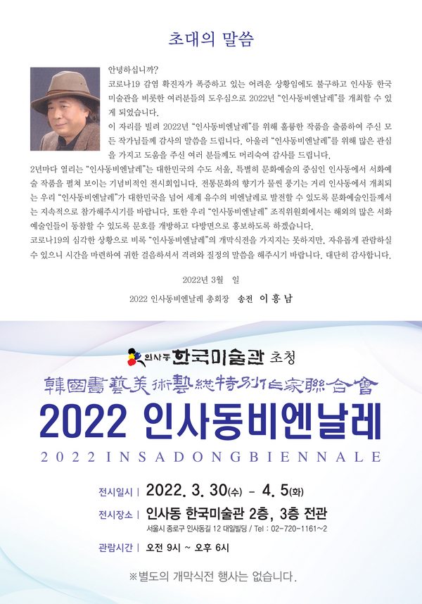 전시일시 : 2022. 3. 30(수) - 4. 5(화)