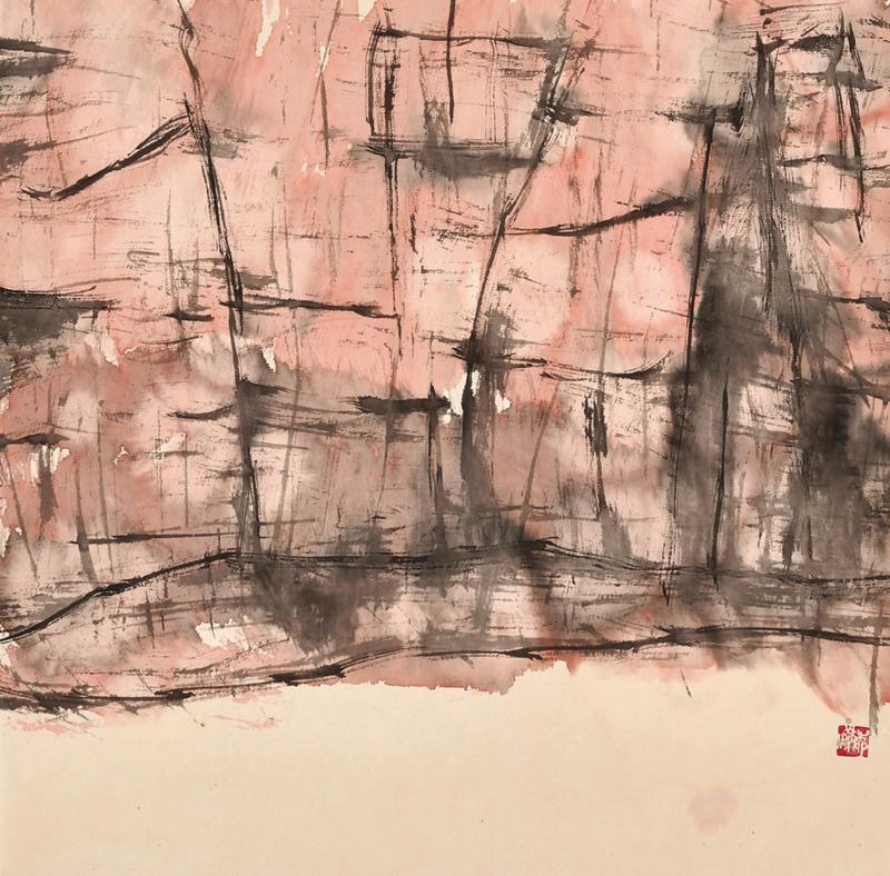 태고의 흔적 Vestiges of ancient times 2025, 화선지에 먹, 담채 34×35㎝