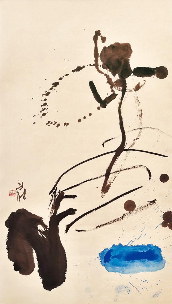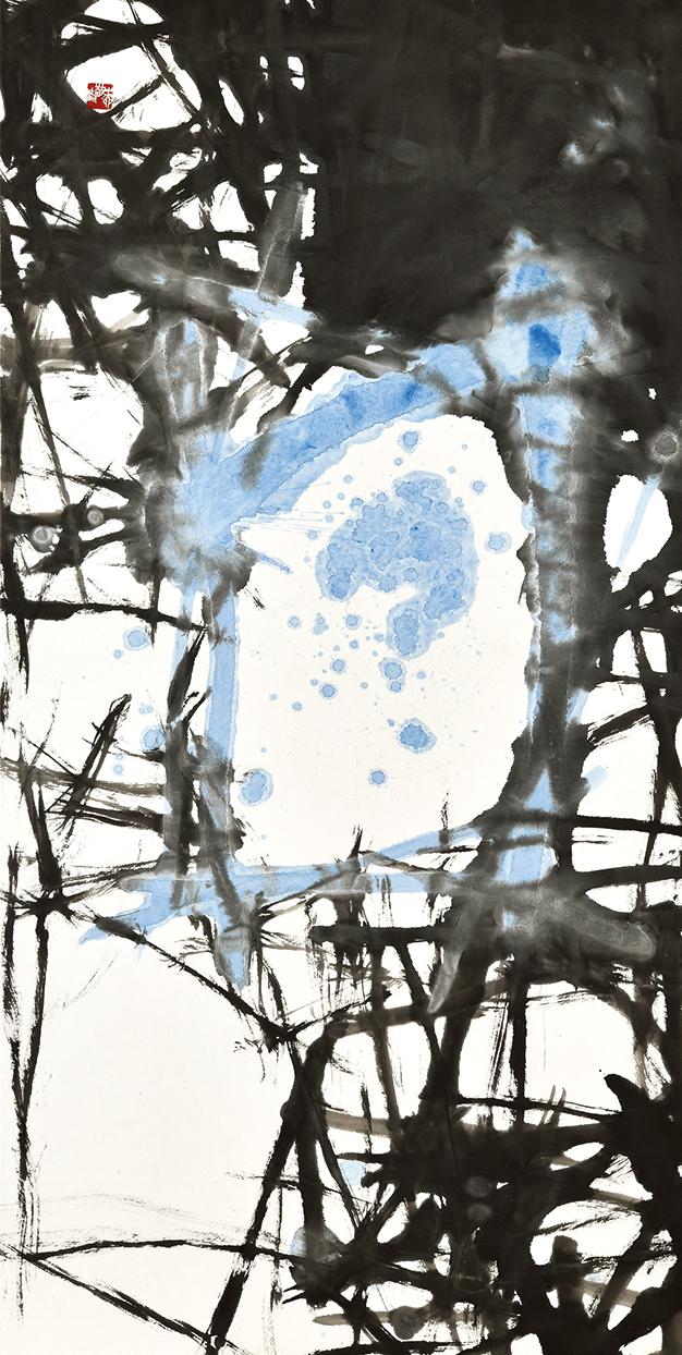 음악과 문학작품에도 여백이 있다. 음악에서의 여백은 쉼표다. 쉼표는 음악에서 음을 내지 않은 것과 그 길이를 나타내는 표를 말한다. 음표와 음표 사이에서 느껴지는 울림이다. 그리고 자연에도 여백이 있다. 자연에서의 여백은 정적인 것과 동적인 것 사이에 존재한다. 취정의 작품에서 주목할 점은 바로 ‘여백餘白’이다. 그의 작품에서의 선과 형 사이에 존재하는 여백은 드러남과 숨김 사이에서 벌어지는 획의 긴장감과 유연함이다. 획의 생성과 공간의 생성은 동시에 일어난다. 그 사이에 여백이 존재한다. 그래서 그의 작품의 여백은 시간성과 공간성을 동시에 가지고 있으며 시간과 공간을 잇대어준다. 작품 <나르샤>(그림4)는 붓이 리듬을 타고 순간적인 붓질이 만들어내는 자연스러움을 보여준다. 즉흥성, 우연성이 만들어내는 필연적 결과물이다. 이는 수십 년의 붓질과 조형에 대한 고민에서 나온 것이다.