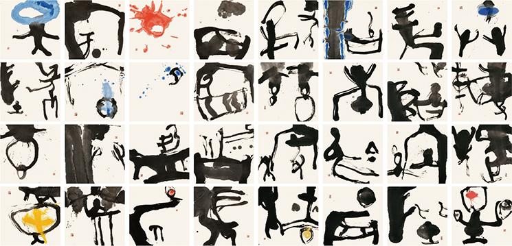 그의 작품 <물처럼>, <맹물> <정井>(그림2) 등의 작품에서 볼 수 있듯이 ‘물’이 가지고 있는 함의를 자신의 서예적 조형감으로 표현하고 있다. <정井>을 보면 문자의 형상形象 너머의 심상心象을 보여준다. ‘정井’자를 반복하고 재구성해 작품을 할 때의 작가의 심정心情을 말하고 있는듯하다.